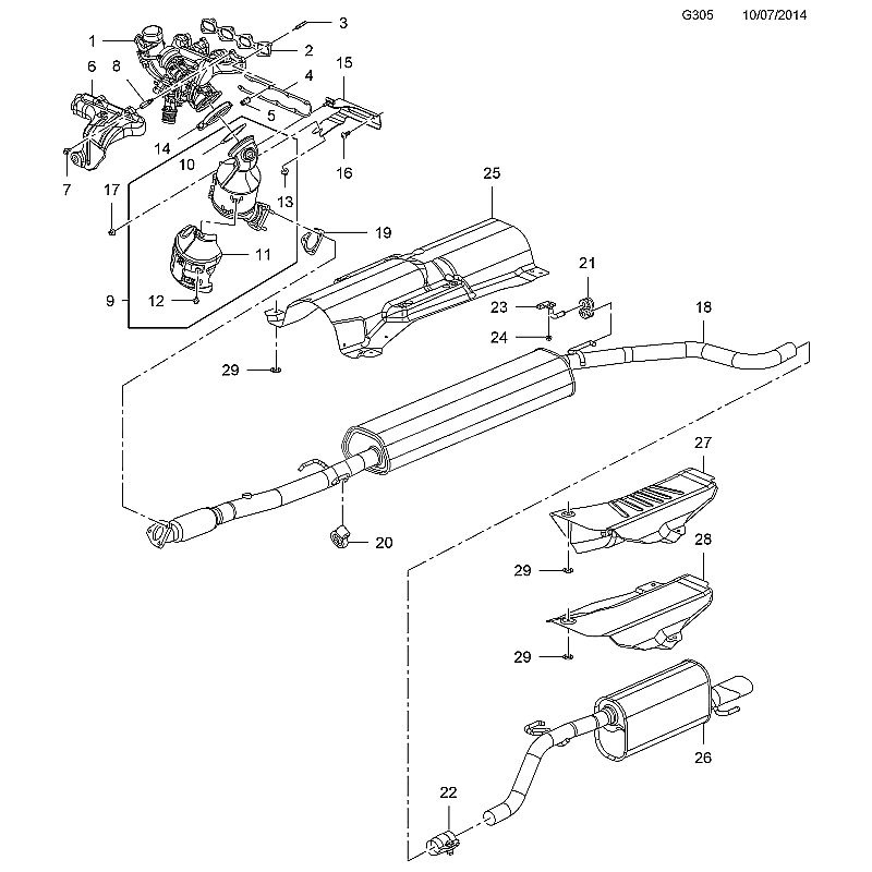 Nowa, oryginalna obejma układu wydechowego stosowana w poniższych modelach Opla.